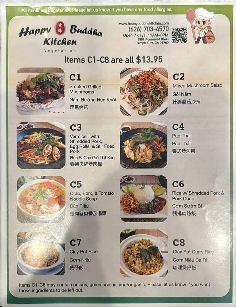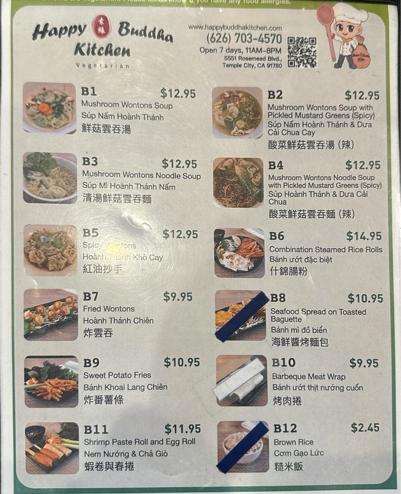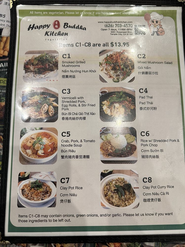 Welcome to Happy Buddha Kitchen, a gem of Vietnamese cuisine located at 5551 Rosemead Blvd in Temple City, CA. This charming eatery embraces an inclusive atmosphere, celebrating Asian and women ownership while catering to diverse dietary needs with both vegan options and limited vegetarian selections.