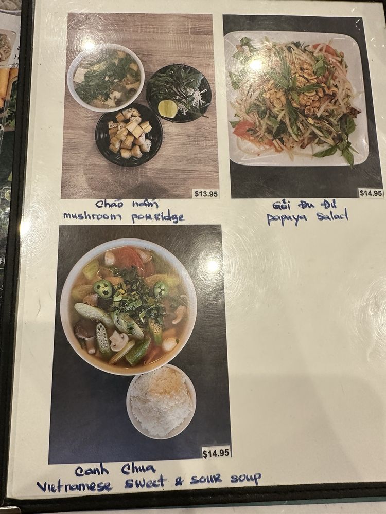 The menu features a delightful array of dishes, from the aromatic Beef Noodle Soup to the enticing Hue Style Spicy Beef Vermicelli Soup, all reasonably priced around $13.95. For those partial to rice, the Clay Pot Peppered Fish and Lemongrass Chicken promise to delight the palate.